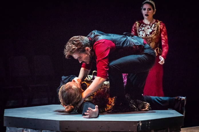 "With a set by Sarah Pearline that looks very much like the original Globe Theatre, and beautifully ornate costumes in layers of leather, lace, and velvet by T. Stacy Hicks, as well as exciting fight scenes with choreography from Alexis Black, it hits many of the right period notes..."